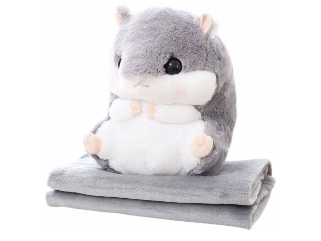 3v1 Plyšový Chomík Šedo-bílý: Deku, Polštářek a Ohřívač v Jednom