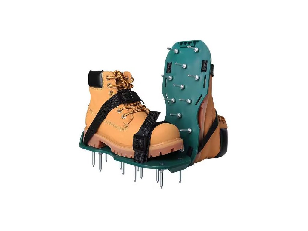 - Tyto nástavce ve formě bot s hroty vylepšují stav půdy a podporují růst trávy jednoduchým, ale efektivním způsobem