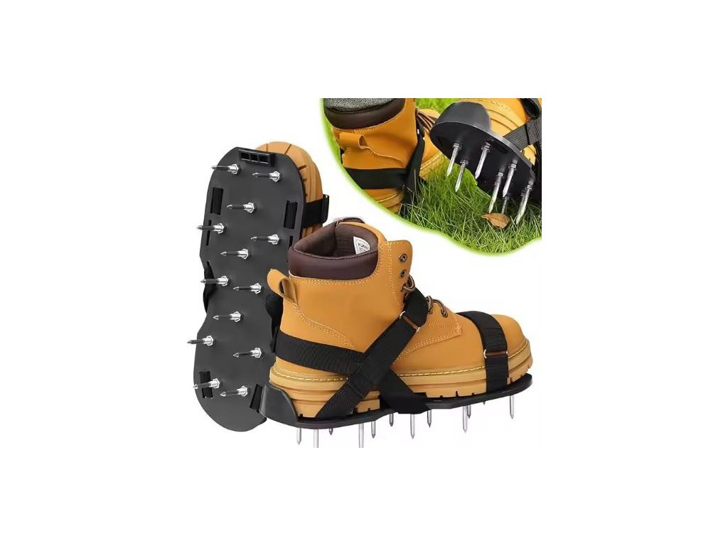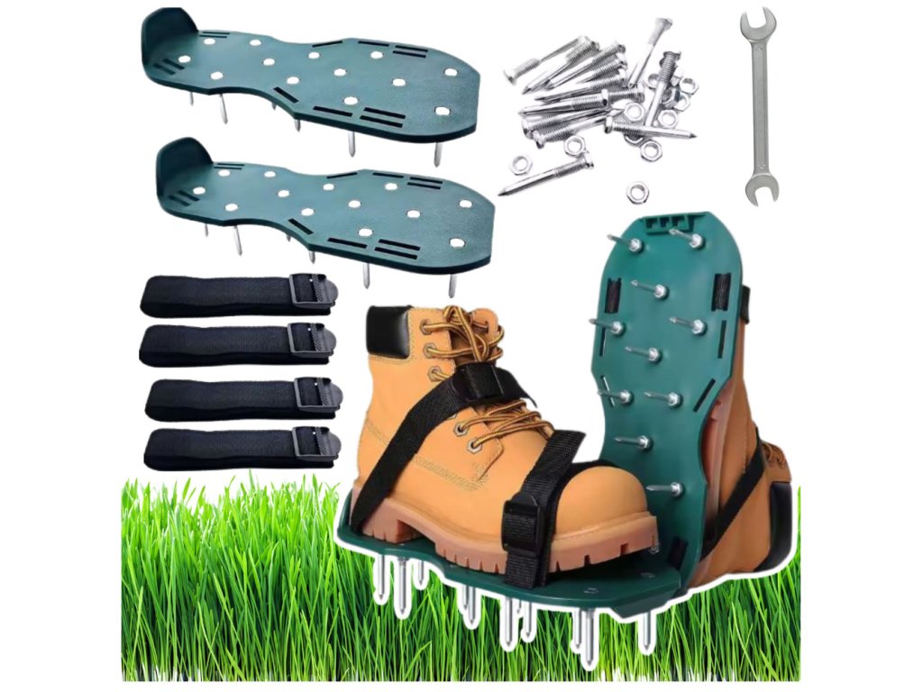 Aerátor vertikulátor nástavce na boty s hroty na trávu jsou ideálním řešením pro dosažení zdravého a hustého trávníku bez nutnosti investovat do drahého, specializovaného vybavení Tyto nástavce ve formě bot s hroty vylepšují stav půdy a podporují růst trávy jednoduchým, ale efektivním způsobem