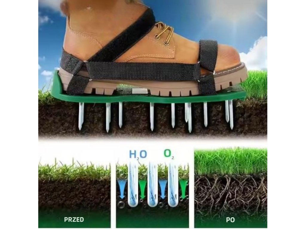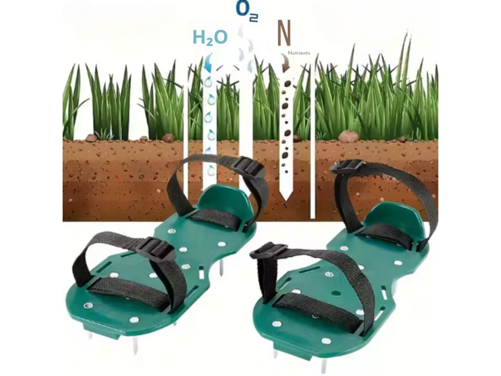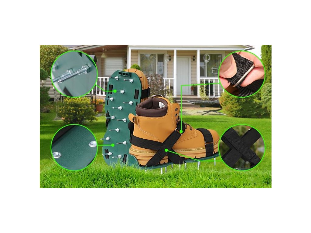 - Stačí je nasadit na své boty a každý váš krok se stane péčí o váš trávník