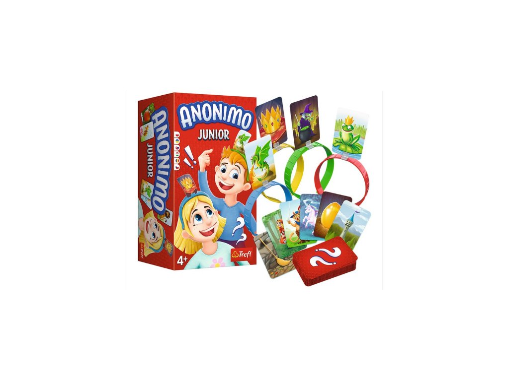 Anonimo Junior je originální rodinná hra navržená pro nejmenší hráče Každý hráč si nasadí čelenku s postavou na svou hlavu a snaží se uhodnout, kdo je!