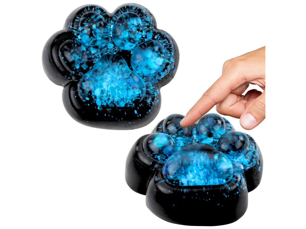 - Představujeme vám antistresový mačkací míč ve tvaru kočičí tlapky s modrým třpytem