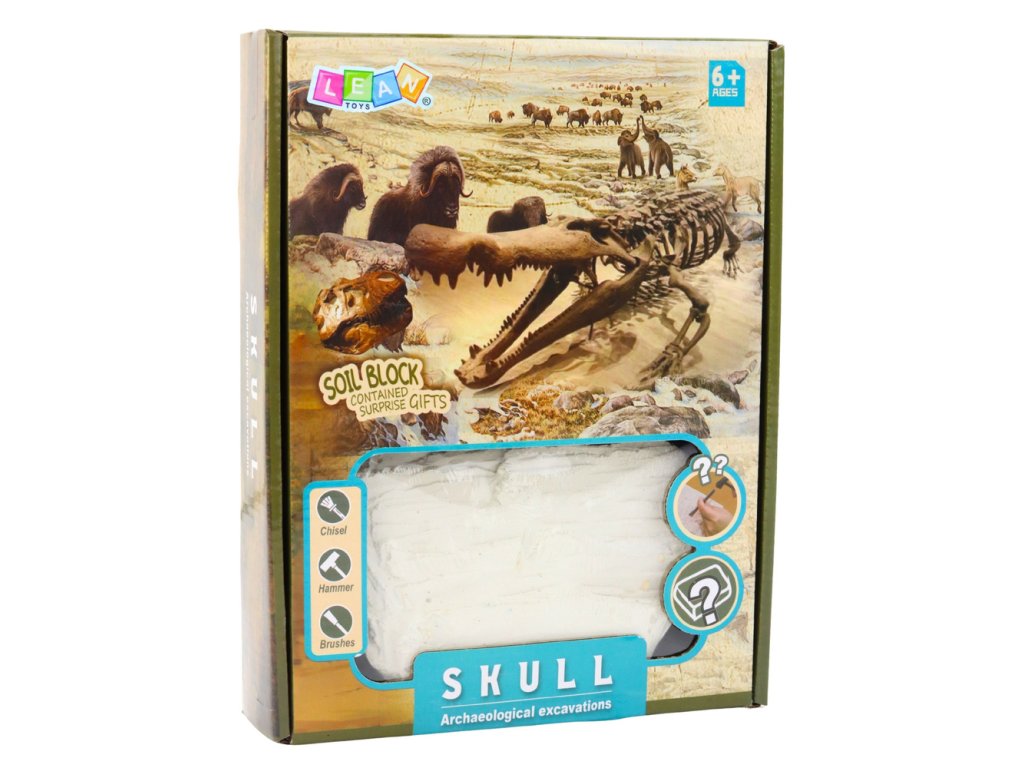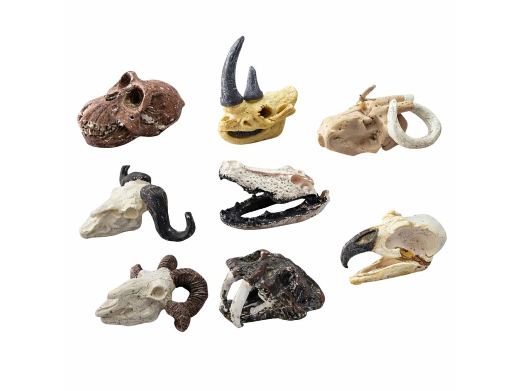 - **Specifikace produktu**: Sádra a plast, tajemná prehistorická lebka jako překvapení, doplňkový motivační prvek pro každého mladého vědce.