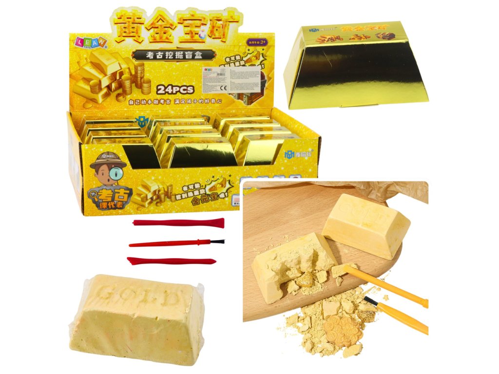 Archeologický Set Zlatá Cihla Výkopová Hračka Kamínky Nástroje