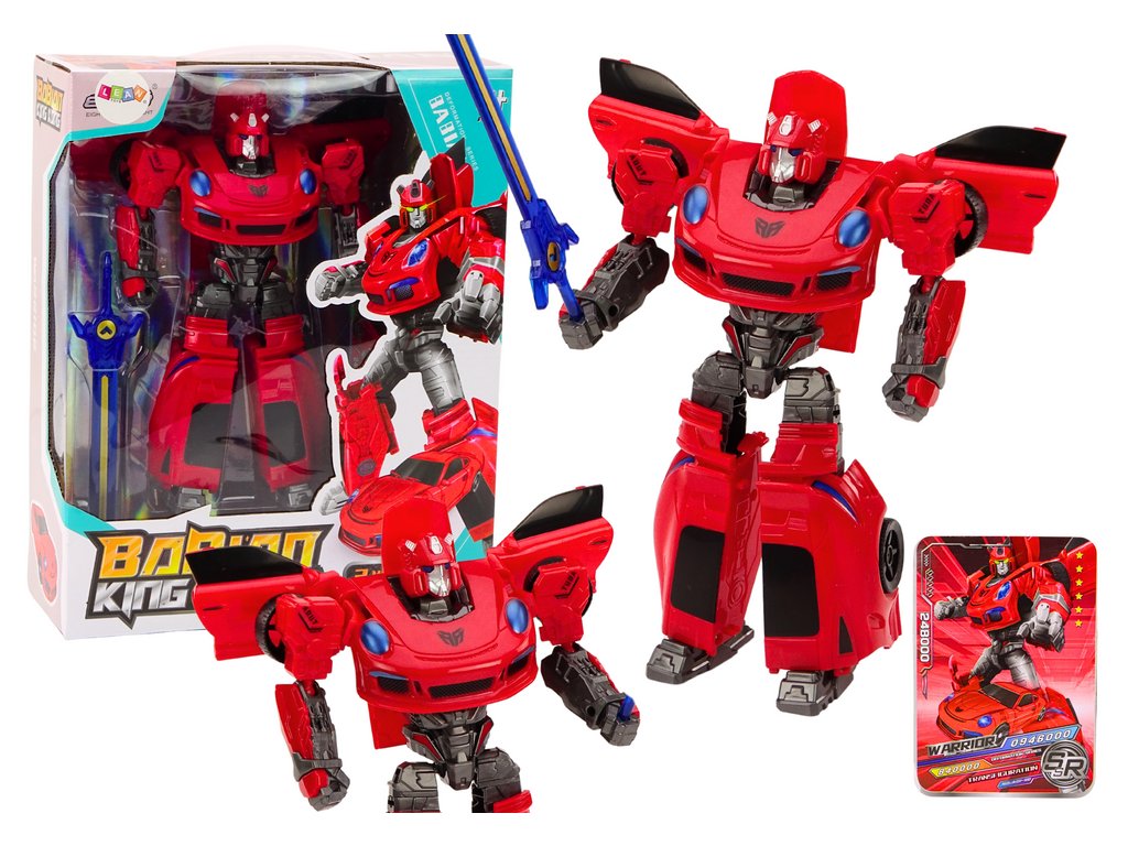 Auto-Robot 2v1 Transformace Sportovní Červený je výjimečný model, který spojuje eleganci sportovního závodního auta a impozantní postavu velkého robota V červené barvě ohromuje detailním zpracováním, díky čemuž vypadá mimořádně realisticky jako vozidlo i robot