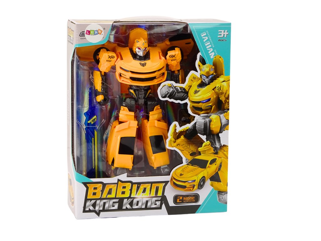 je neobyčejný model, který spojuje eleganci sportovního závodního auta s impozantní postavou velkého robota V žluté barvě zaujme detailním provedením, díky kterému vypadá velmi realisticky jak jako vozidlo, tak i jako robot
