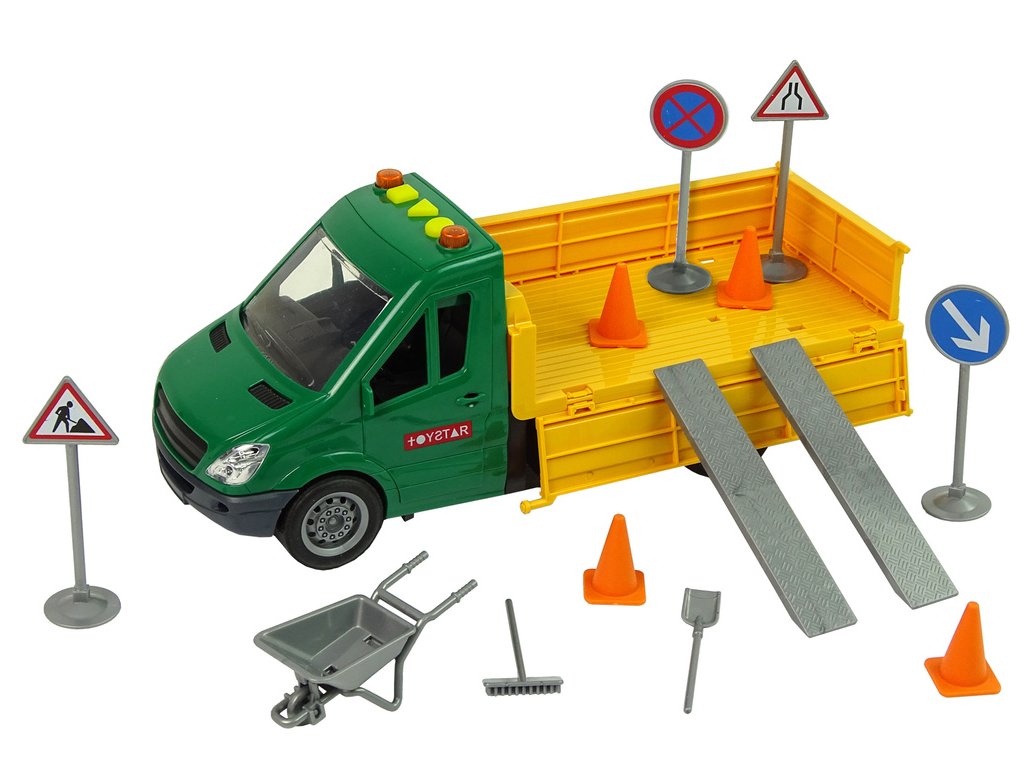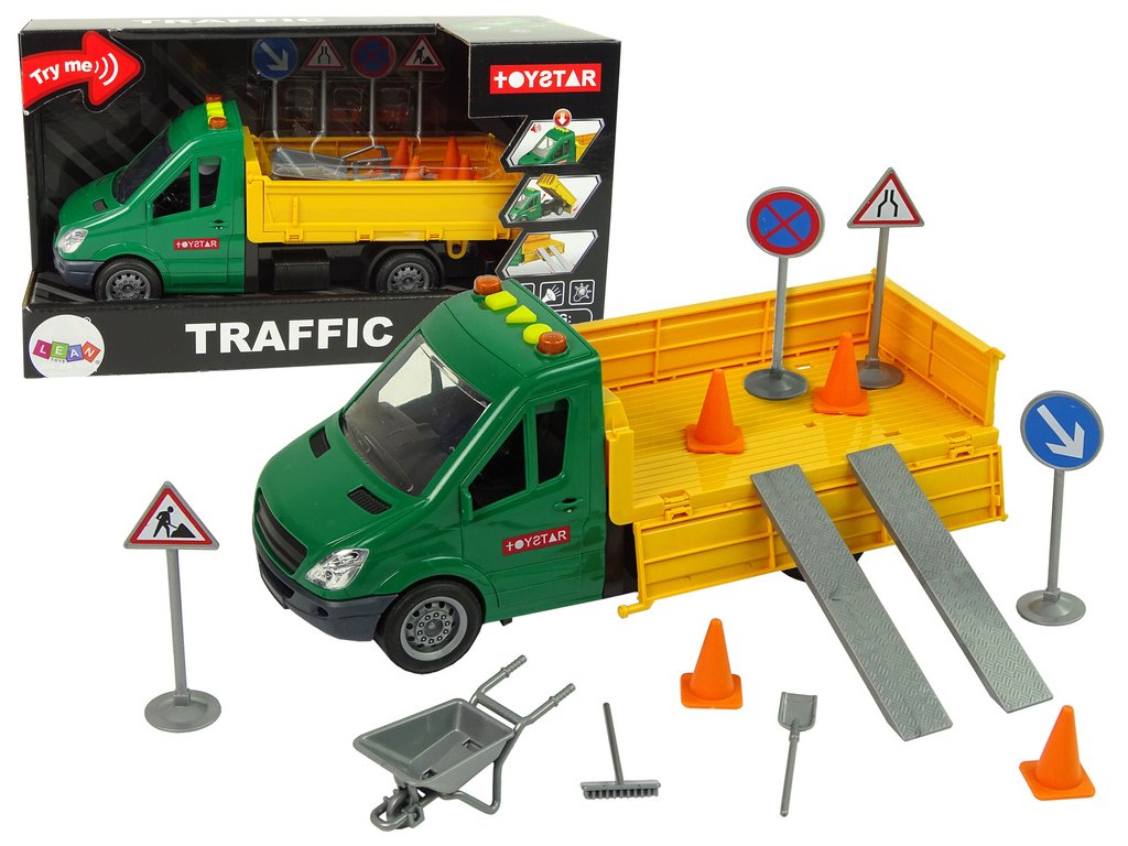 - Sada zahrnuje vše potřebné pro simulaci oprav na silnici, včetně dopravních značek, příslušenství a podvozku pro mimořádný zážitek z hraní