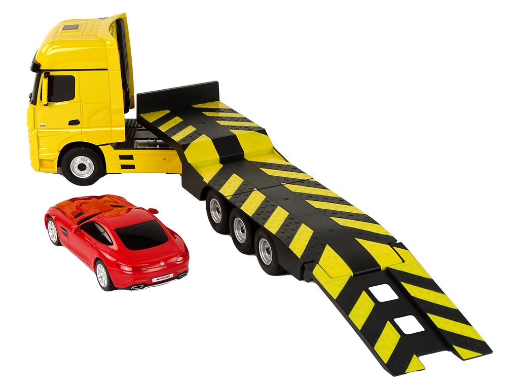 - Auto Transportér R/C Mercedes-Benz 1:26 v atraktivních barvách žluté a červené je ideální volbou pro všechny malé motoristické nadšence