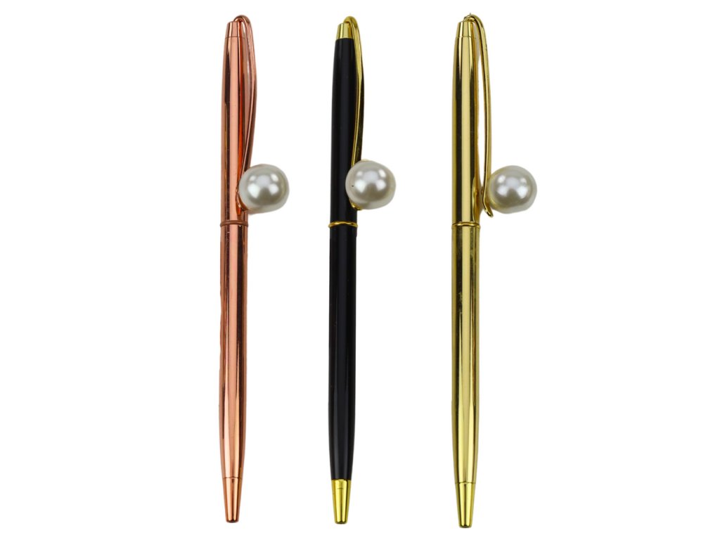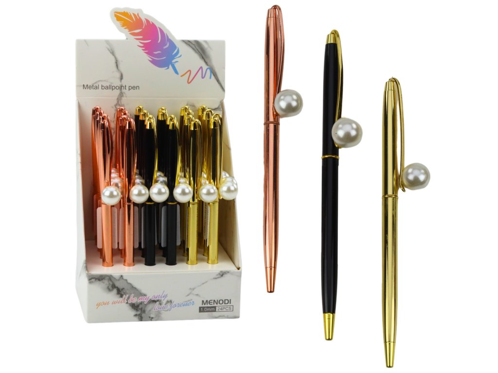 - Automatické kovové pero Perla Elegantní kovové pero s ozdobným zakončením ve tvaru velké perly představuje výjimečný doplněk do kanceláře, školy nebo pro každodenní použití