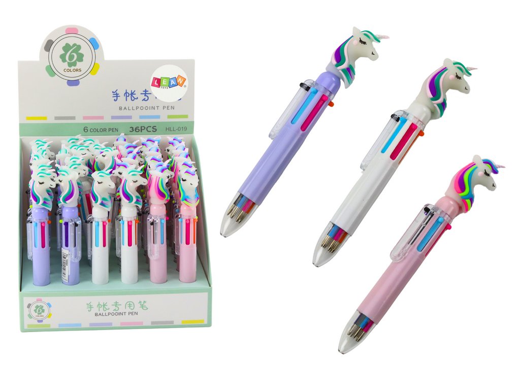 Vícebarevné Automatické Pero Jednorožec nabízí spojení zábavy a praktičnosti s možností psaní 6 různými barvami v jednom psacím nástroji.