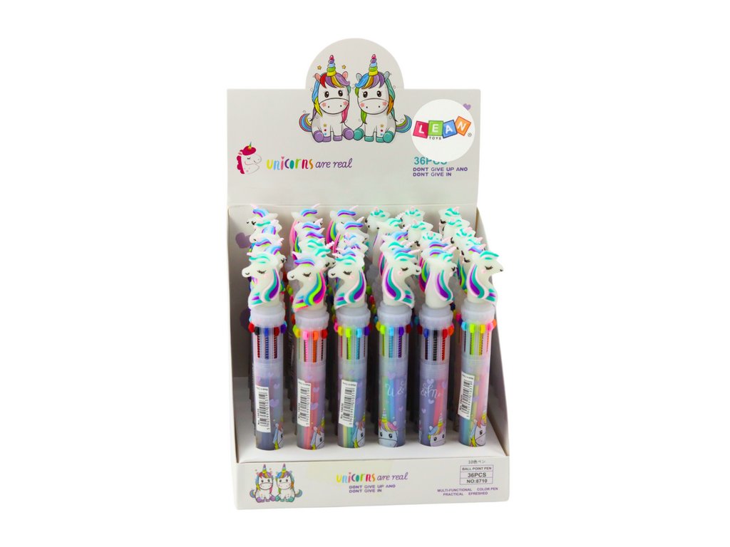 Automatické vícebarevné pero Jednorožec 10 barev Mix je skvělým spojením zábavy a praktičnosti, které nabídne vašim dětem až 10 barev v jednom psacím nástroji