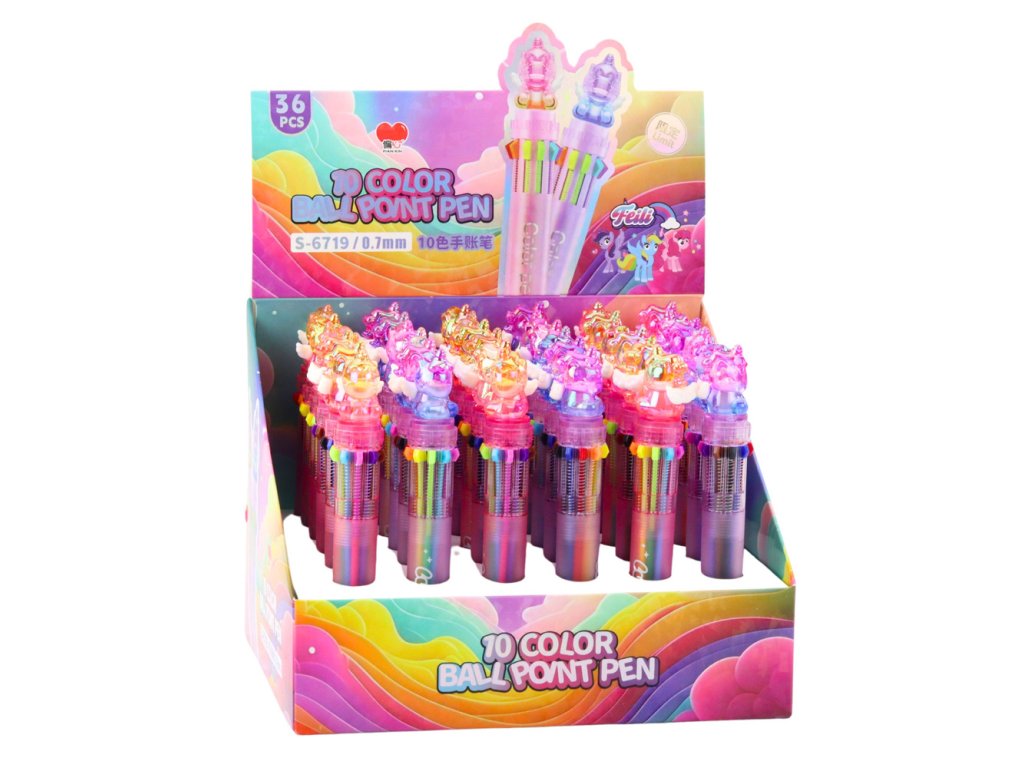 Automatické vícebarevné pero s jednorožcem 10v1 – pro děti je perfektním doplňkem pro každé dítě, které rádo používá barevné školní potřeby a kreativně si hraje.