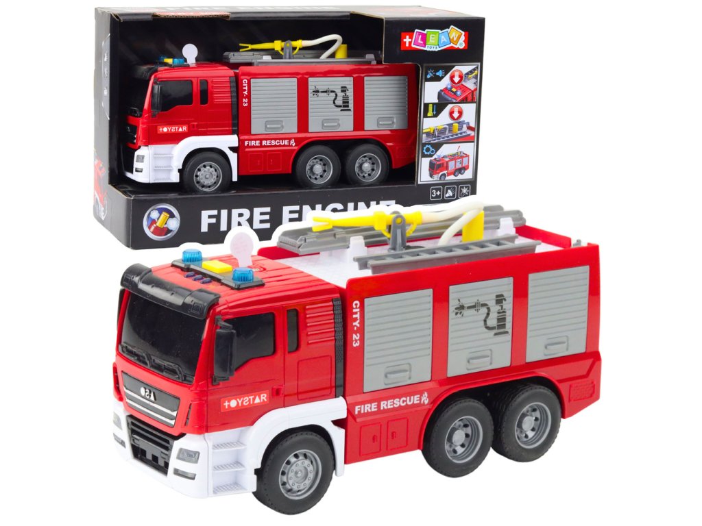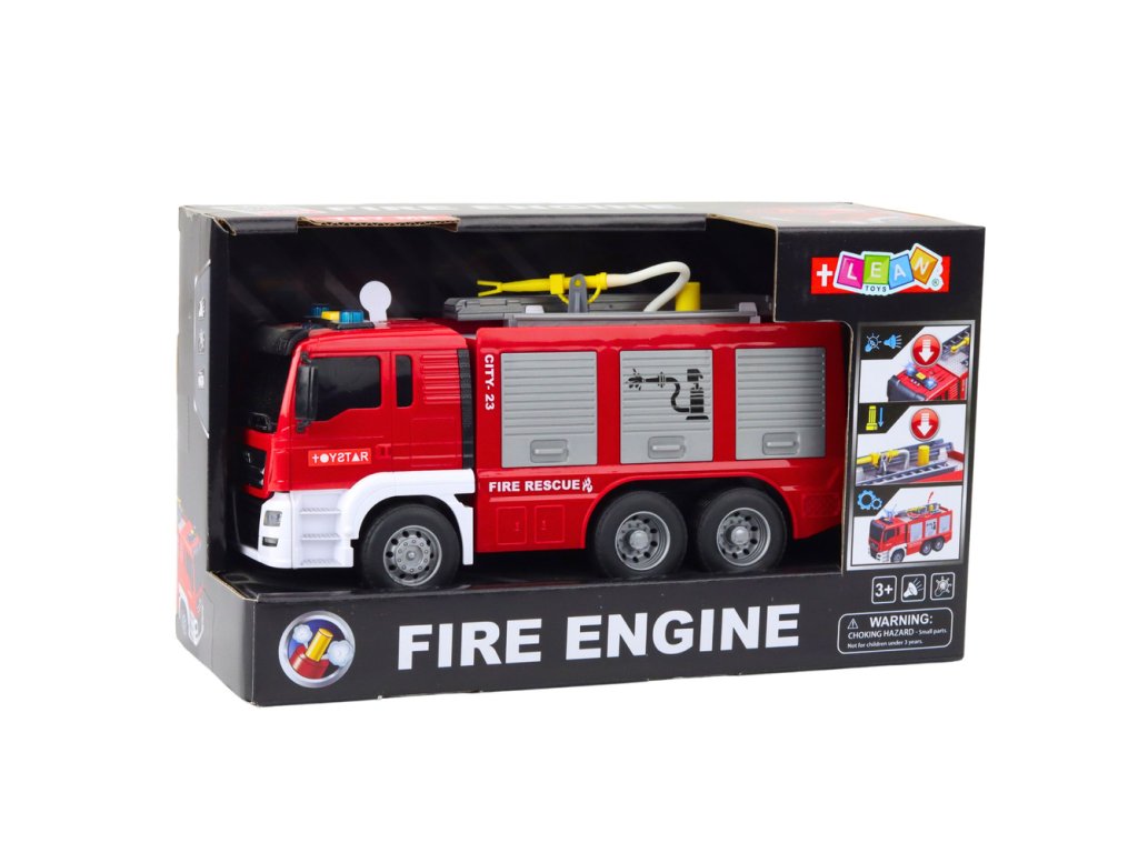 - Přiveďte své dítě přímo do středu záchranné akce s velkým hasičským autem, které je vybaveno světelnými a zvukovými efekty, výsuvným žebříkem a funkcí stříkání vody!