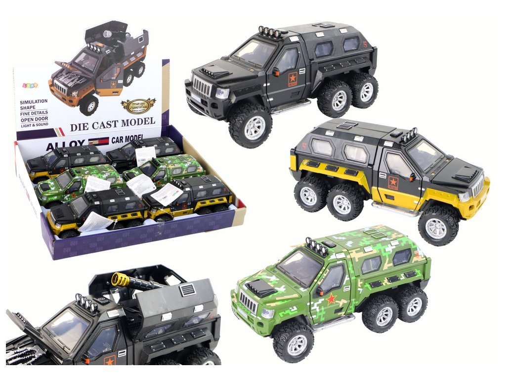 Auto s kanónem uprostřed, zvuk, světla, 3 barvy Toto je impozantní hračka, která se vyznačuje realistickým vzhledem a dokonale propracovanými detaily.