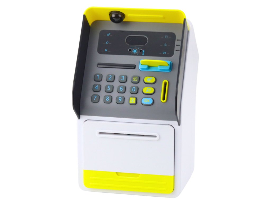 ZABAWKOWÝ BANKOMAT SEJF SKARBONKA Z KODEM PIN ŽLUTÝ Zabawkowy bankomat-sejf je inovativní vzdělávací hračka, která umožňuje dětem prakticky se naučit základy financí a řízení úspor.