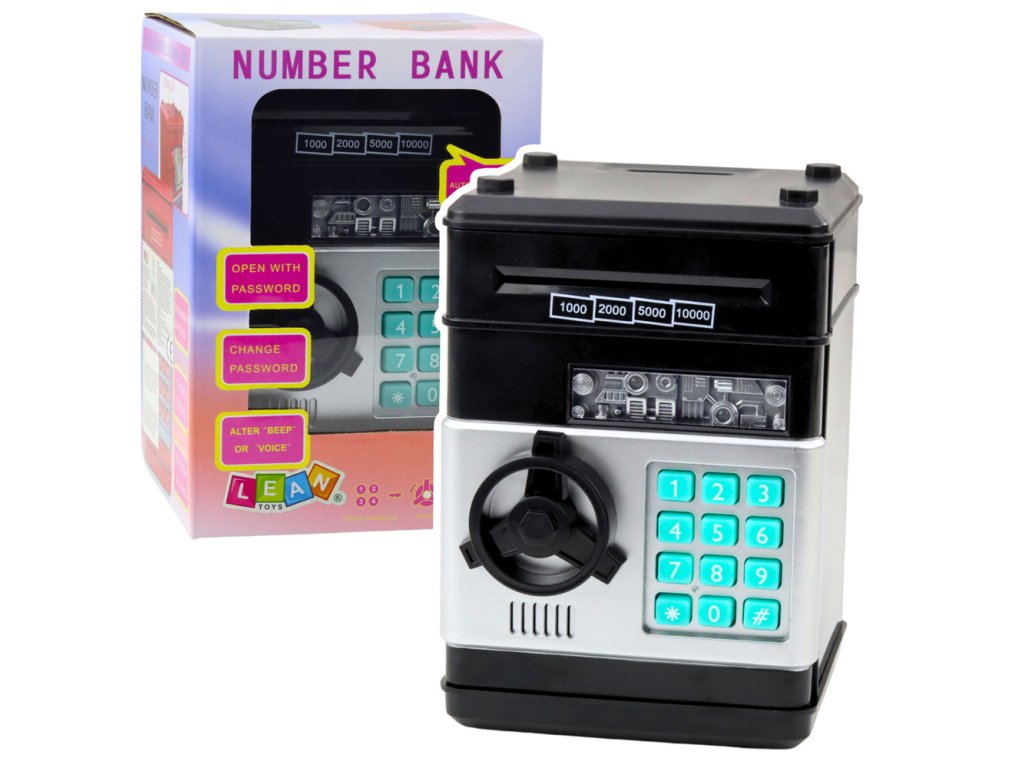 ČERNÝ Trezor Pokladnička Na Mince A Bankovky S PIN Kódem ČERNÝ Moderní pokladnička v podobě trezoru je vynikajícím způsobem, jak spojit učení spoření se zábavou a každodenní interakcí