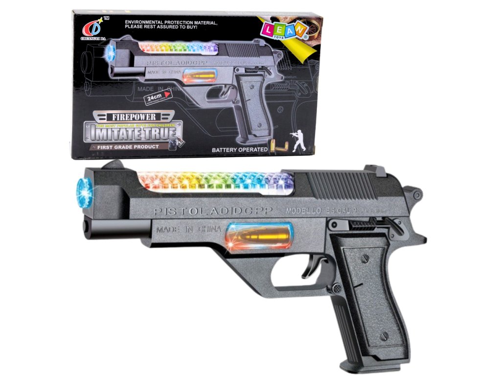 - Pistole na baterie s efekty světla a zvuky je jedinečná hračka, která poskytne dětem množství radosti a vzrušující zábavy