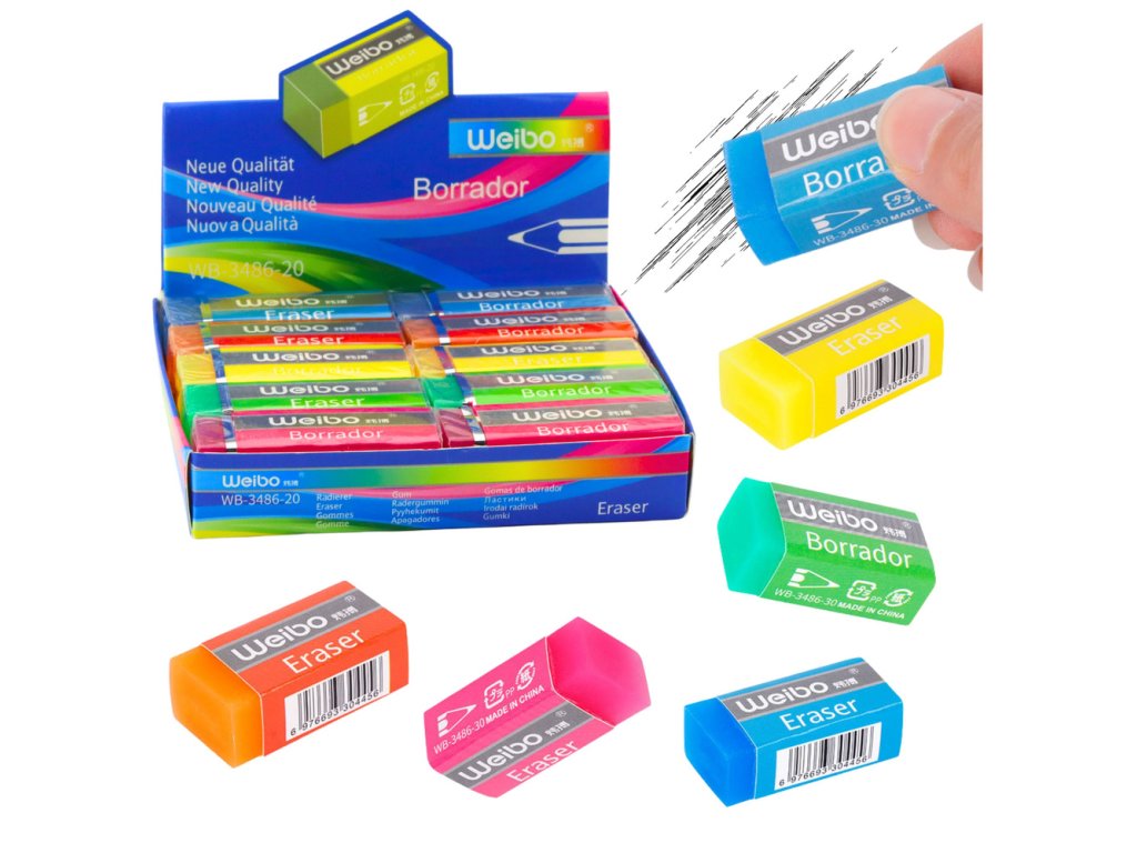 - Barevná gumovací guma Weibo WB-3486-20 je praktickým a estetickým doplňkem pro každou školní nebo kancelářskou sadu