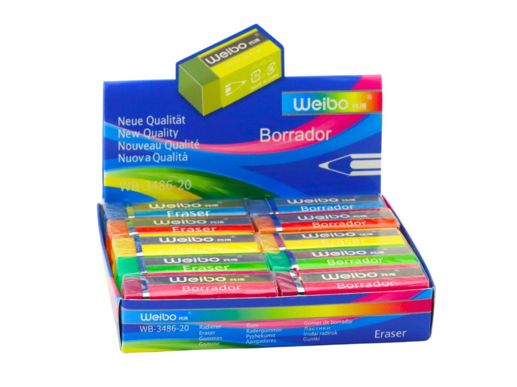 Barevná gumovací guma Weibo WB-3486-20 je praktickým a estetickým doplňkem pro každou školní nebo kancelářskou sadu.