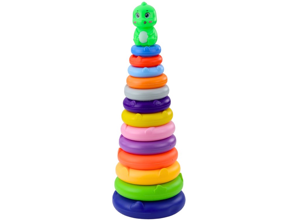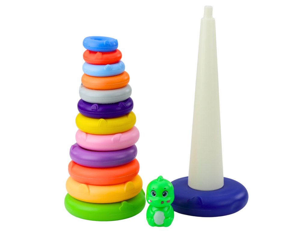 - Barevná věž s kroužkem a dinosaurem je klasická edukační hračka, která je již léta oblíbená mezi nejmladšími dětmi a jejich rodiči