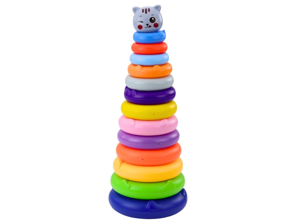 - Barevná věž pyramidka Kočička šedá je klasická edukativní hračka, která po generace podporuje rozvoj nejmladších dětí prostřednictvím radostné a kreativní hry