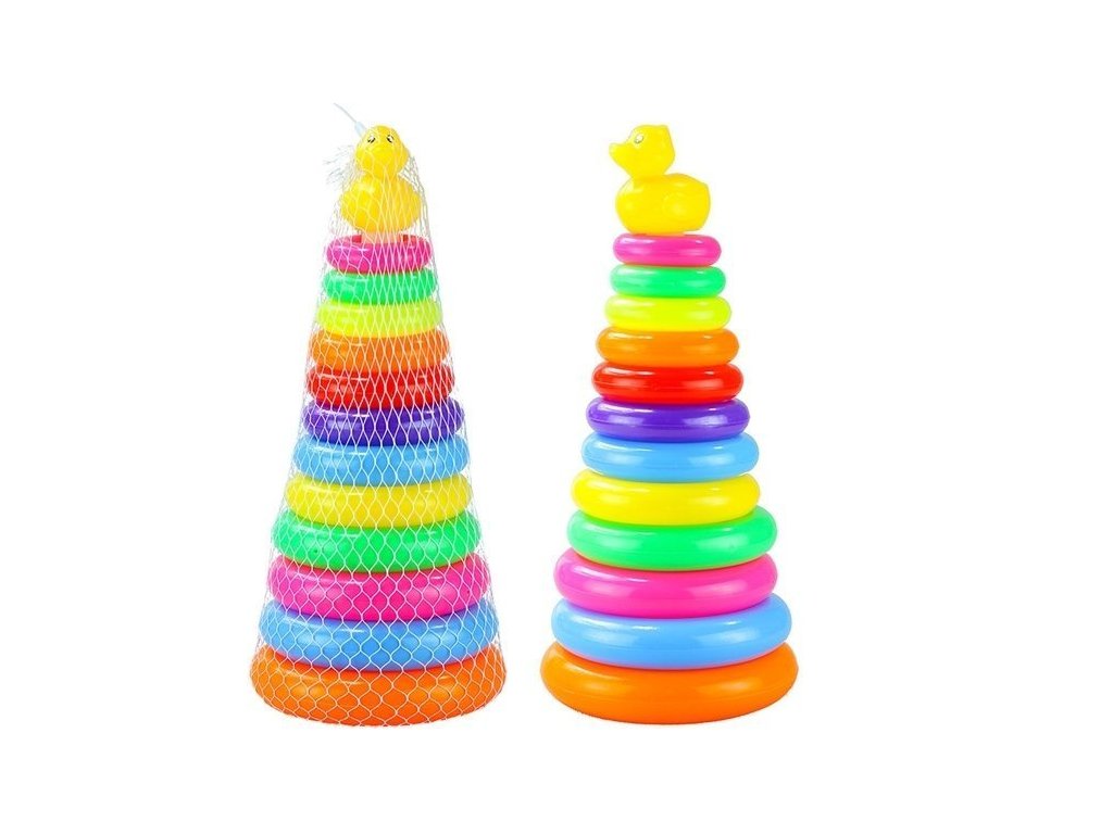 - Pyramida z koleček Pyramida 40 cm vysoká skládačka Pyramida z koleček je klasická hračka v pohádkově barevném provedení