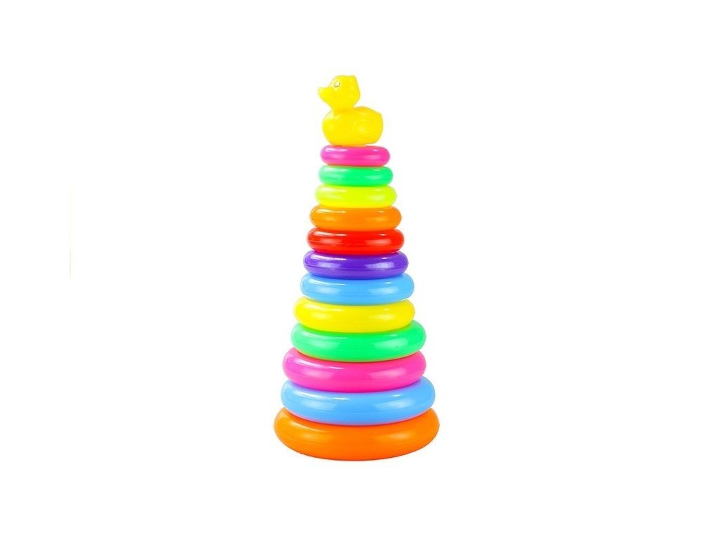 S touto barevnou hračkou vyrobenou z bezpečného, měkkého plastu se naše ratolest nemusí rozloučit ani při koupání Žlutá kachnička umístěná na vrcholu pyramidy navíc celou hru zatraktivňuje