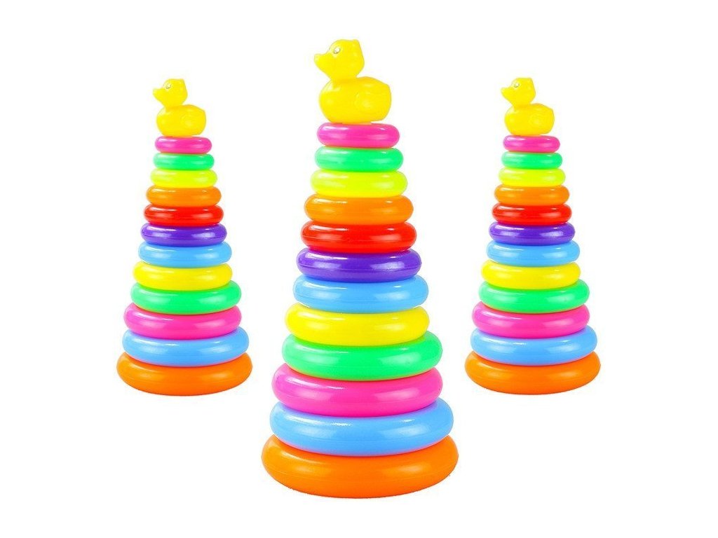 - Barevná věž s kruhy je víc než jen hračka