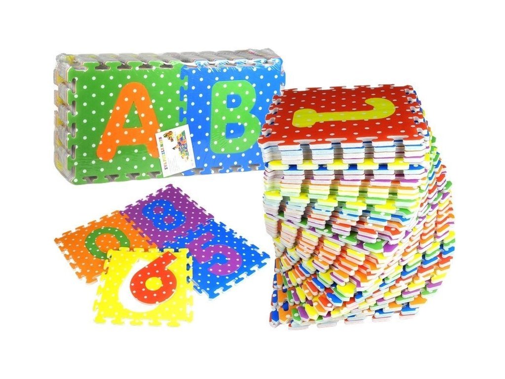 - Pěnové puzzle barevné abeceda a číslice 36 dílků Pěnové puzzle určené pro nejmenší děti k hraní a učení
