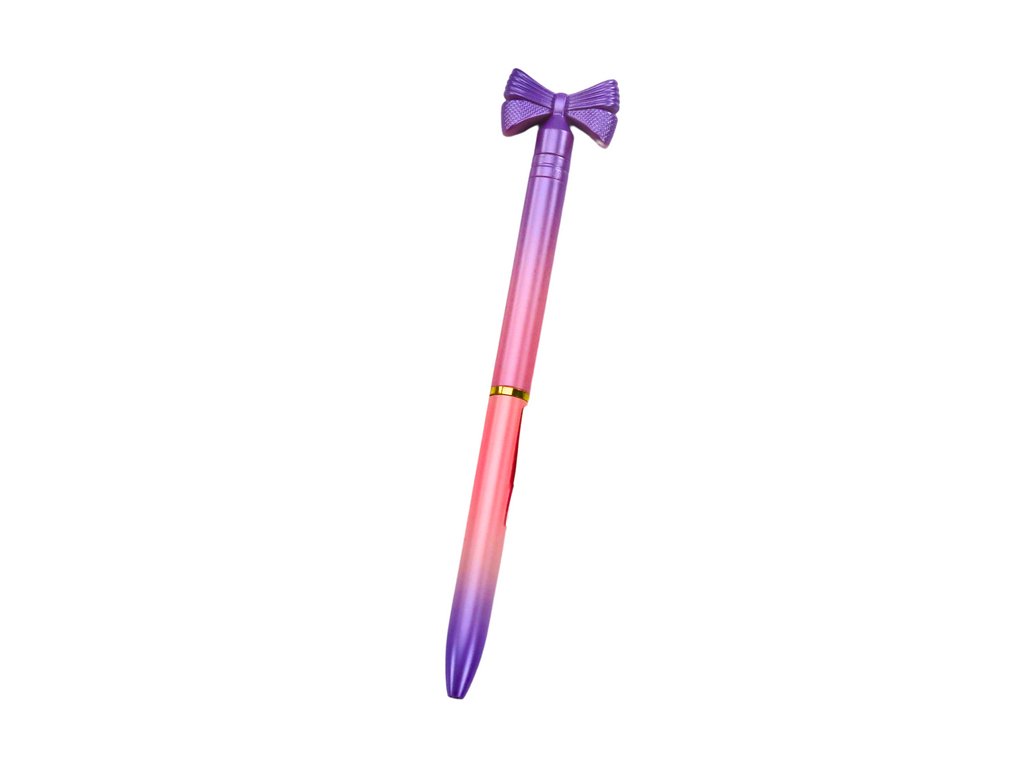 Toto barevné pero s mašlí a modrou náplní je jedinečným spojením elegance a funkčnosti Na jeho konci se nachází mašle, která mu dodává elegantní vzhled