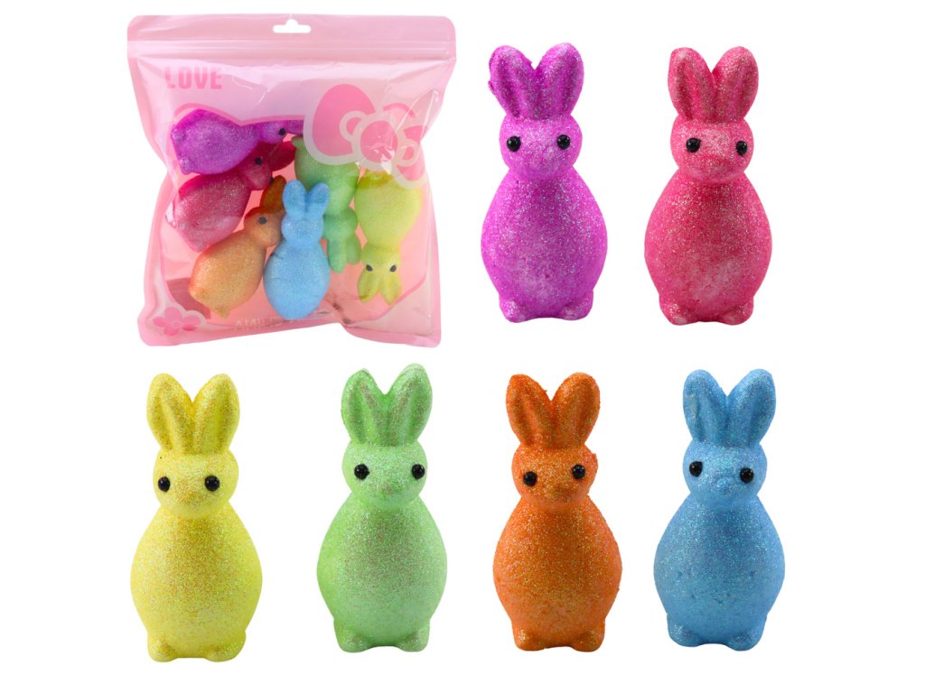 Barevní velikonoční zajíčci z polystyrenu s třpytem 6 ks