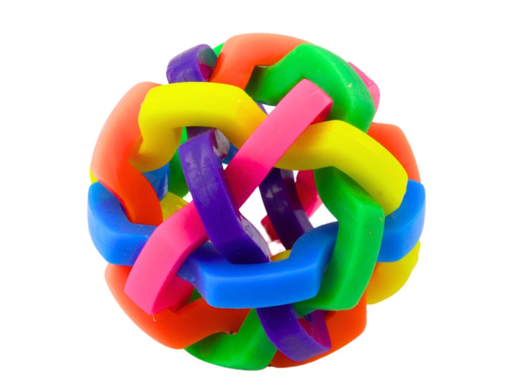 Barevný Gumový Splétaný Míč 7,5 cm je atraktivní smyslová hračka navržená s ohledem na děti i osoby hledající antistresovou zábavu