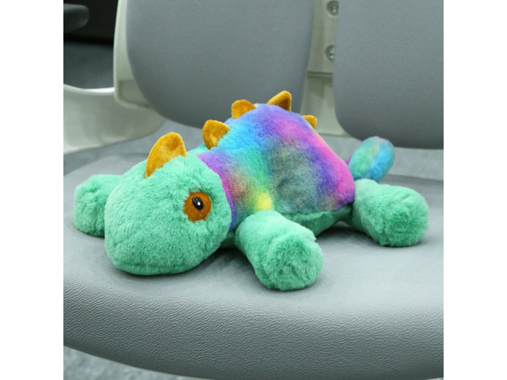 kombinuje zelenou přední část s duhovým hřbetem a žlutými detaily na zádech a hlavě, které mu dodávají charakteristický, pohádkový půvab Navržený v ležící poloze, plyšák odráží přirozený tvar chameleona a zároveň zůstává přátelský a příjemný na dotek