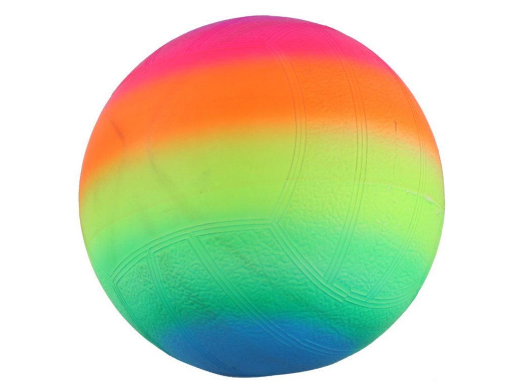 Barevný gumový plážový míč o průměru 22 cm je skvělým návrhem pro zábavu jak na čerstvém vzduchu, tak v interiéru Jeho povrch je pokryt efektním, duhovým gradientem barev, který mu dodává dynamický a veselý charakter a zároveň okamžitě přitahuje pozornost dětí všech věkových kategorií