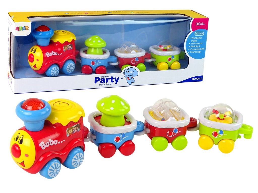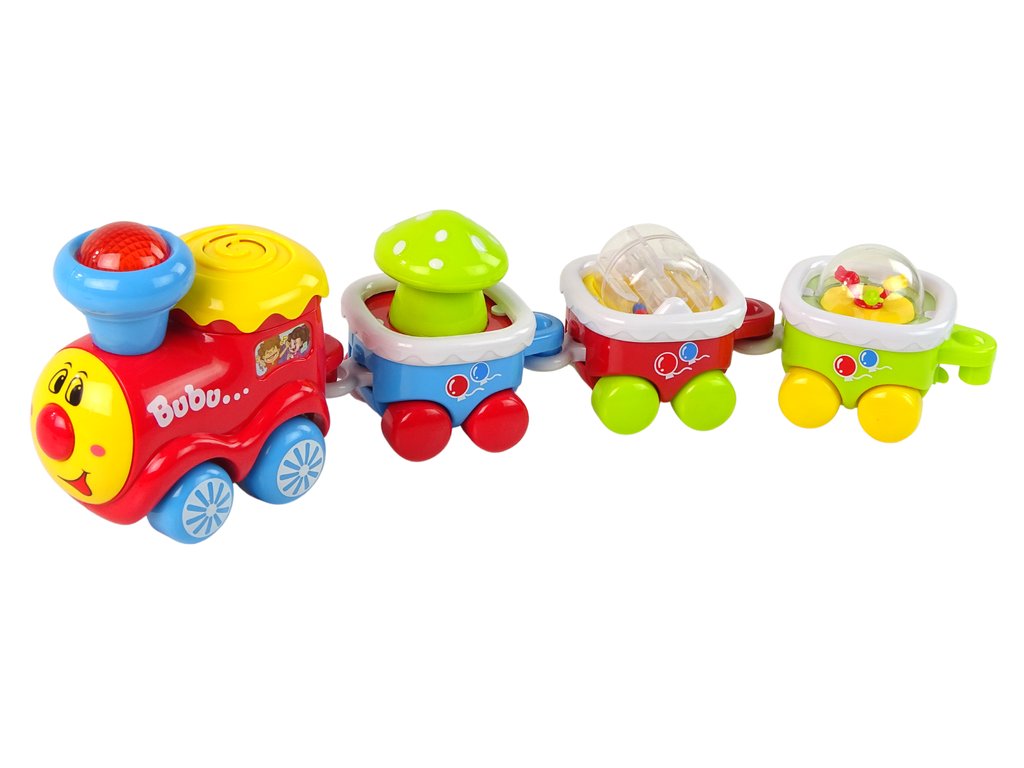 - Barevný vzdělávací vláček pro nejmenší Světelné a zvukové efekty Lokomotiva s vagóny je úžasná interaktivní vláček se zvuky a veselými melodií, který potěší každé dítě milující vlaky