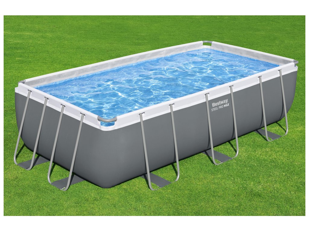 Bázen s kovovým rámem 404 x 201 x 100 cm Bestway 56442 je ideální volbou pro ty, kdo hledají velký bazén, ve kterém si mohou pohodlně zaplavat a užívat si slunečního počasí v zahradě.