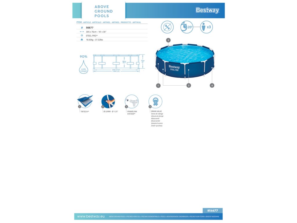 Bazén Zahradní S Rámem 305 x 76 cm Bestway 56677 je ideální volbou pro ty, kteří hledají osvěžení během horkých letních dnů a chtějí si užít radosti léta společně s rodinou nebo přáteli Díky speciální rámové konstrukci je možné bazén naplnit vodou až do 90 % jeho kapacity, což je více než u stejně velkých rozkládacích bazénů