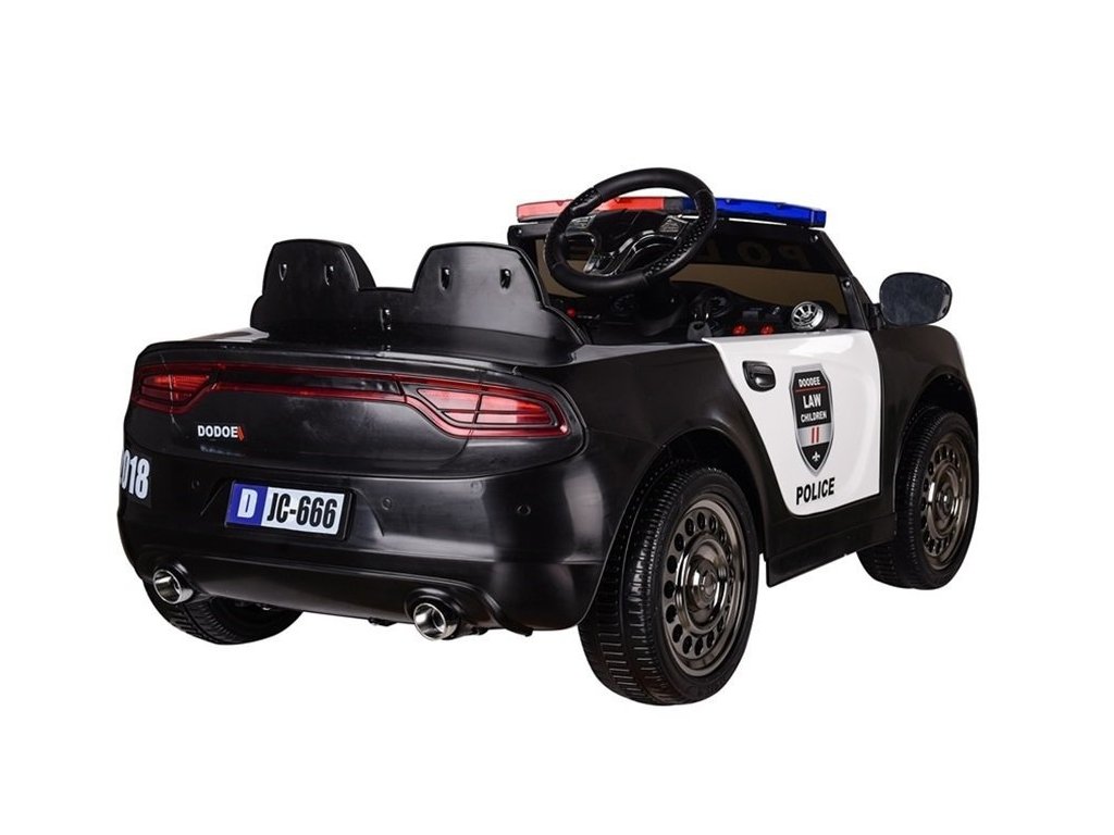 Váš malý hrdina sní o kariéře policisty? Dejte mu možnost zažít napínavý pocit řízení černého policejního vozu na akumulator už dnes! Tento unikátní vůz zajistí, že každá hra dostane nový rozměr radosti. Jeho černá karoserie zdobená policejními nálepkami a ikonickým nápisem POLICE přitáhne pozornost všech kolemjdoucích. Nad čelním sklem se rozsvěcují modro-červená světla, která rozzáří každé dětské očiště.