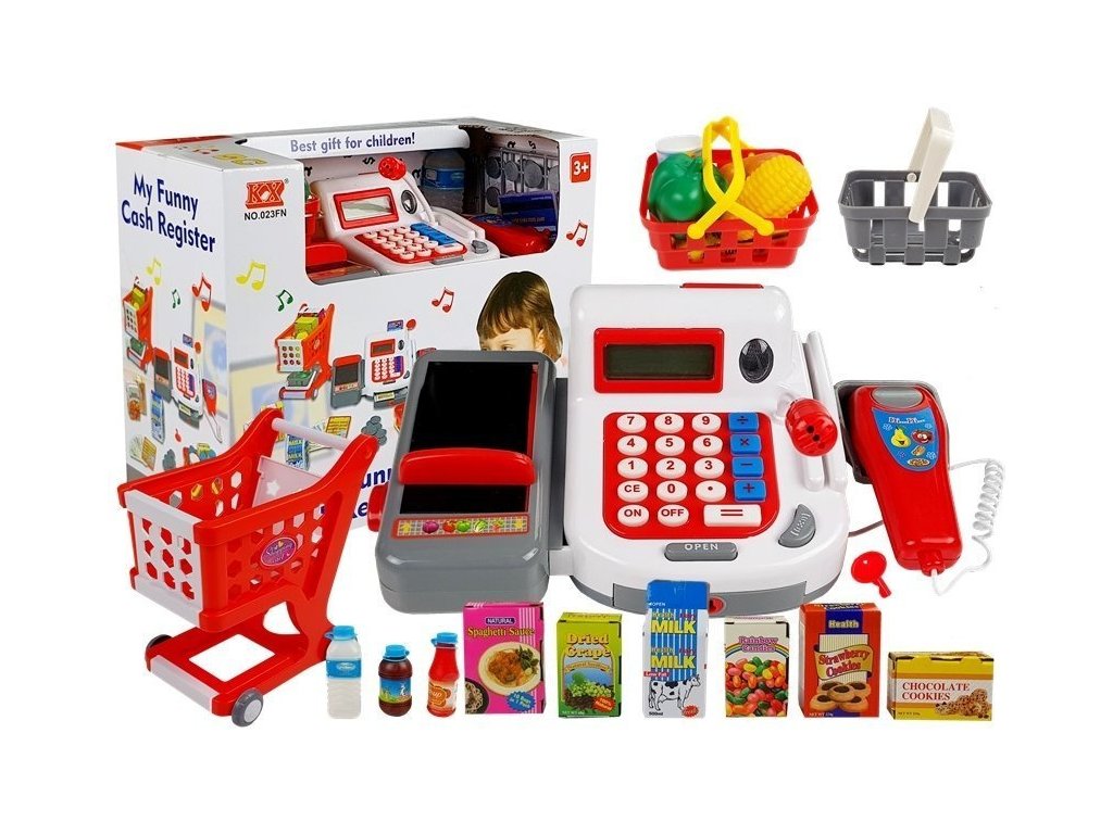oblíbenou zábavou pro děti všech věkových kategorií. Tento set s pokladnou, vozíkem a košíky nabízí skvělou příležitost pro vaše dítě angažovat se v učení matematiky skrze hru tím nejpříjemnějším způsobem. Zábavná pokladna s mnoha doplňky rozšíří a zpestří dětskou hernu a zároveň poslouží jako barevný doplněk do dětského pokoje nebo herny. Tento model je bezpečný, neboť je vyroben z kvalitních materiálů s potřebnými certifikáty. Jeho moderní design s ladivými tvary a výraznými barvami upoutá každé dítě k další hře.