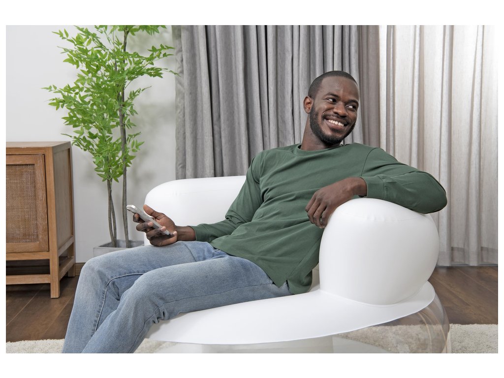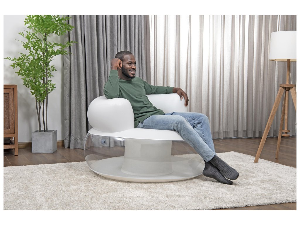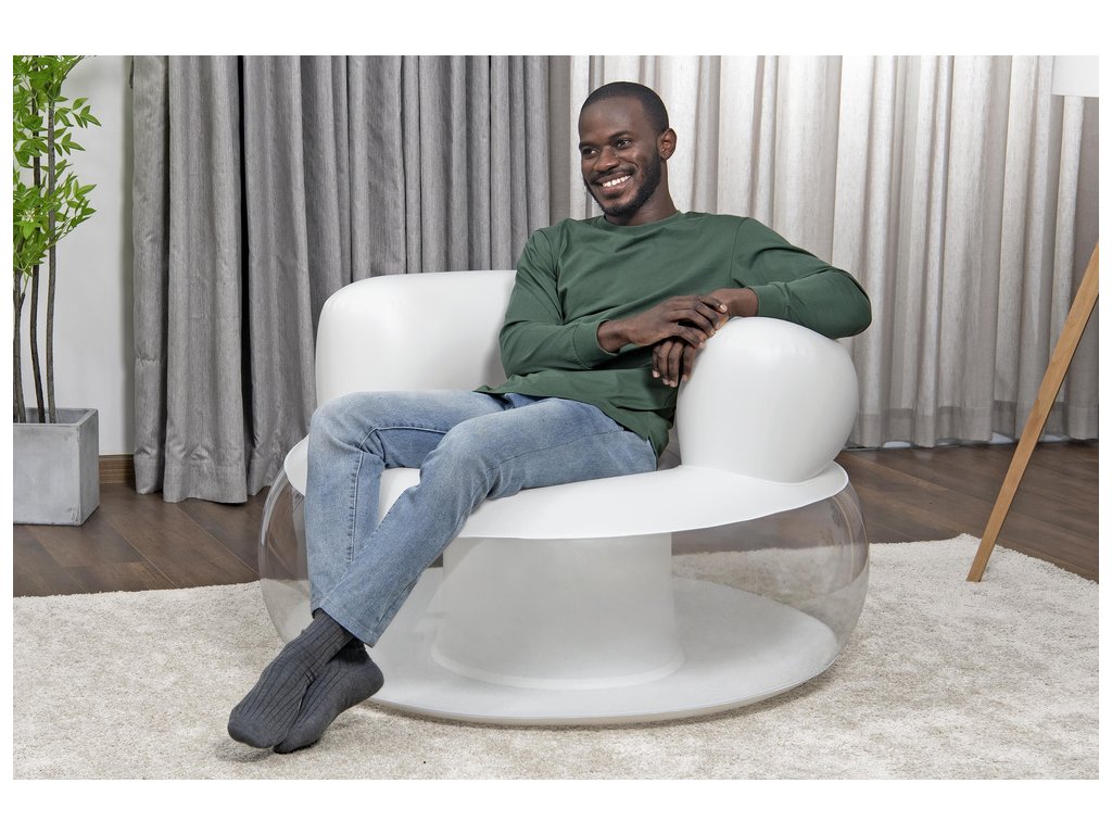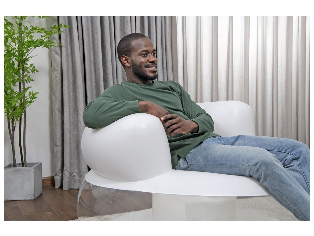 - Bílá nafukovací křeslo od společnosti Bestway, model 75138, je pohodlné a stylové sedadlo ideální pro použití doma i venku