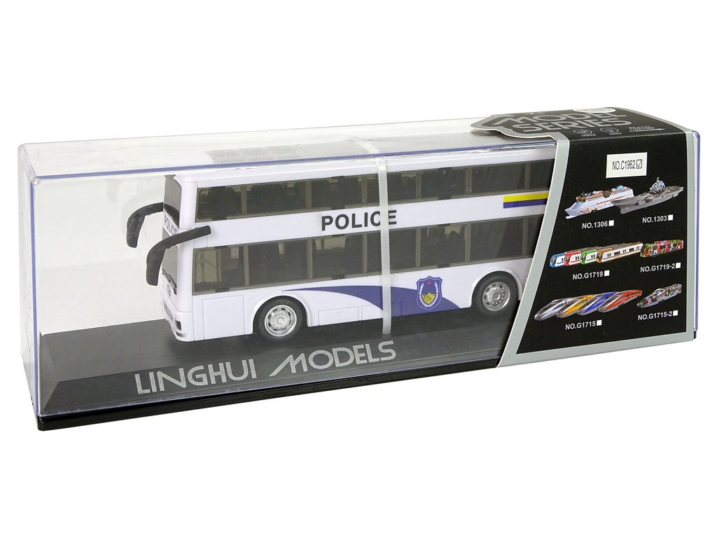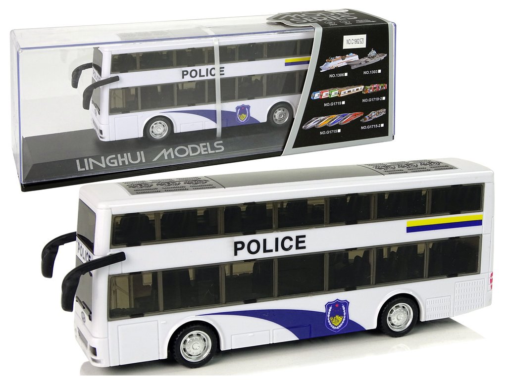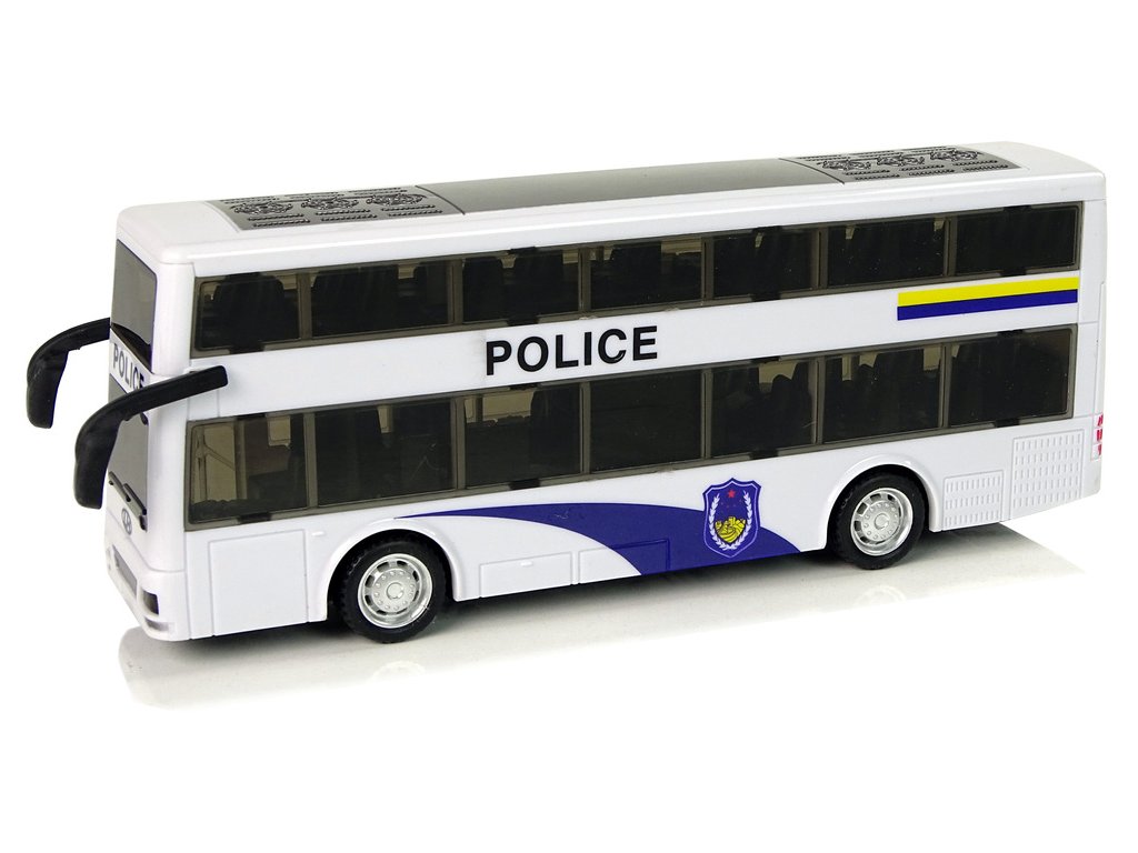 - Objevte kouzlo Bílého Dvoupatrového Policejního Autobusu se Zvukovými Efekty!