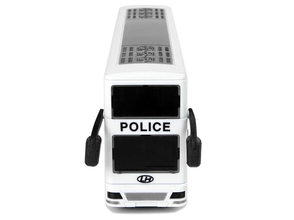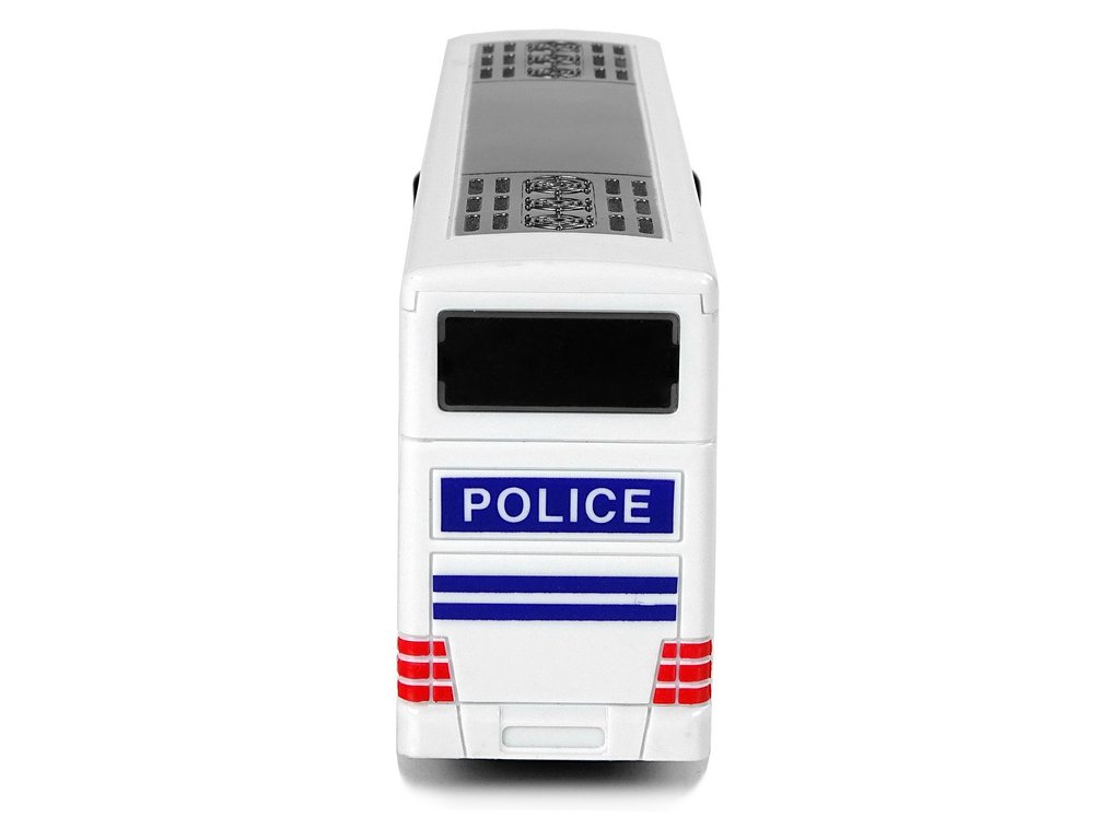 - Dvoupatrový bílý policejní autobus se zvukem Váš malý kluk pořád mluví o tom, že chce být policistou?