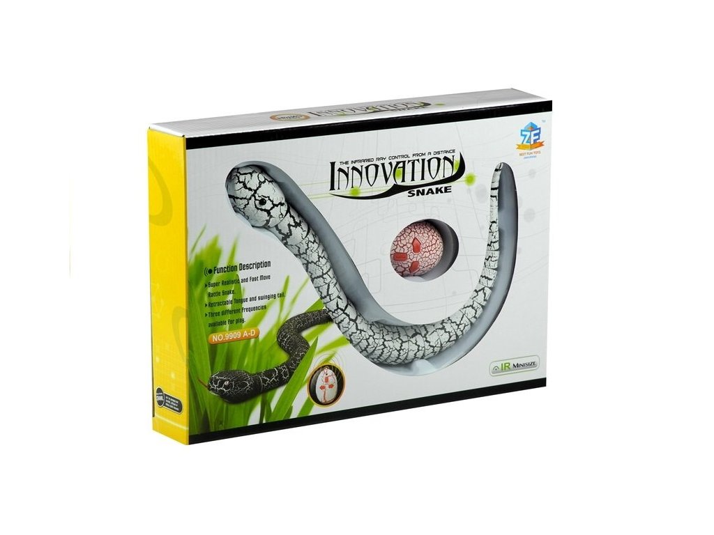 - V sadě najdete bílého hada, který vypadá jako skutečný plaz, infračervený ovladač ve tvaru starého popraskaného vejce, návod k použití