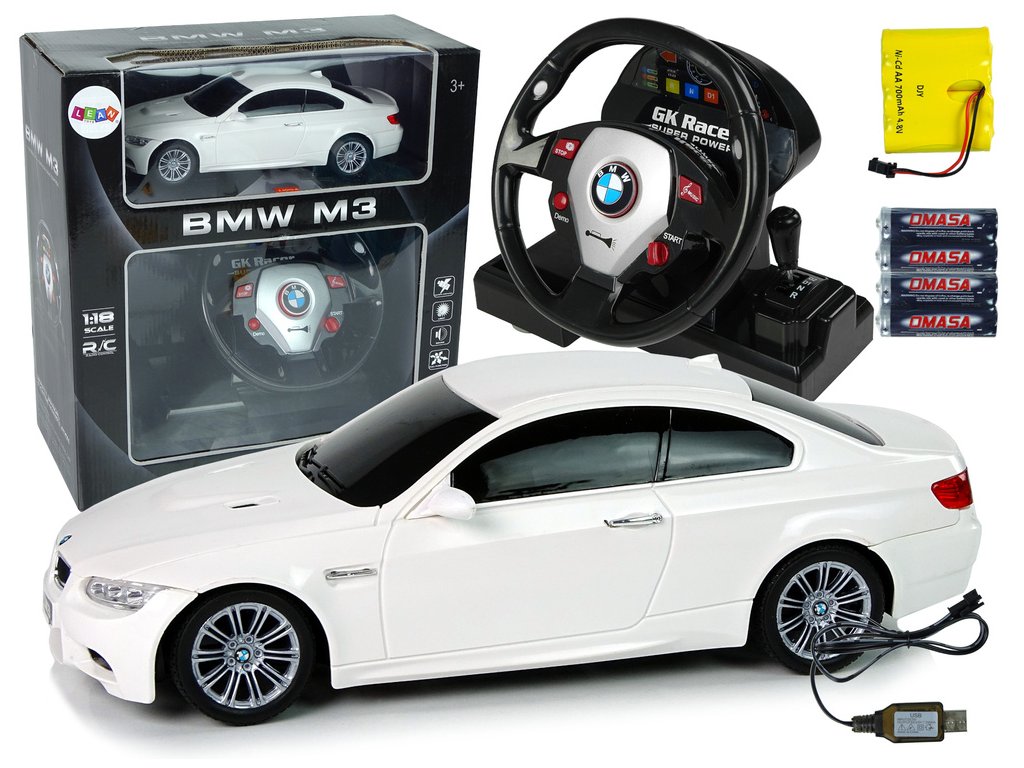 BMW M3 RC Auto Bílý 1:18, Dálkové Ovládání Volant, Zvuk & Světla