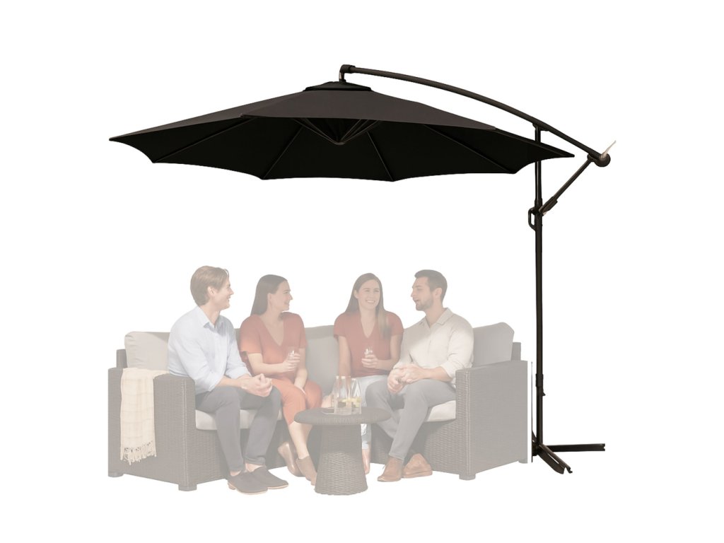 - Díky velkému průměru stříšky o rozměru až 350 cm účinně ochrání větší plochu terasy, zahrady nebo balkonu, což umožní užívat si relax na čerstvém vzduchu