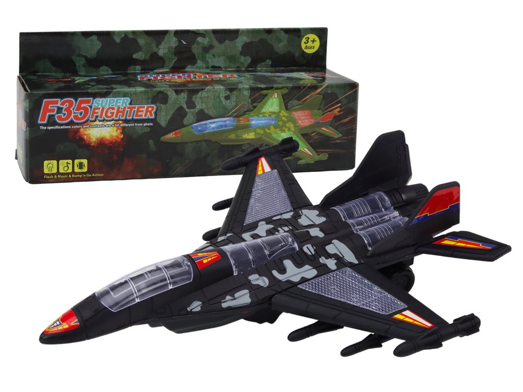 - Militární stíhačka F35 Jezdící světla Zvuky Černá Rádi bychom vám představili jedinečný černý stíhací letoun, který vás přenese do fascinujícího světa leteckých dobrodružství, jaké jste dosud nezažili!