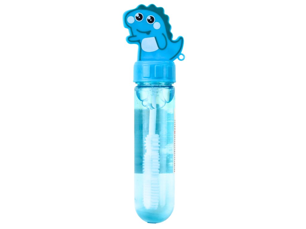 BAŇKY MYDLINOVÉ DINOZAUR 13 CM Baňky mydlinové s veselým dinosaurem jsou hračkou, která poskytuje mnoho radosti a povzbuzuje děti k aktivitě na čerstvém vzduchu Barevná zátka ve tvaru dinosaura má malé kolečko, skrz které lze protáhnout šňůrku