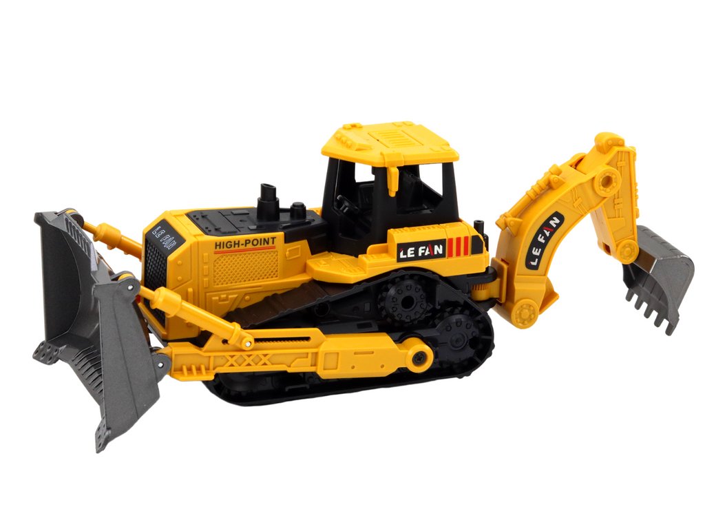 - Tento detailně propracovaný žlutý buldozer s dvěma různými lžícemi je dokonalým společníkem pro každé dobrodružství