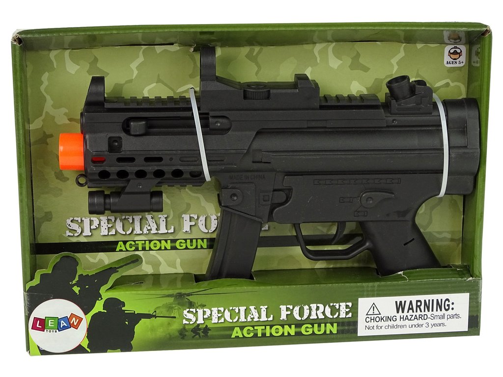 Černá vojenská dětská pistol s vibracemi a zvukem