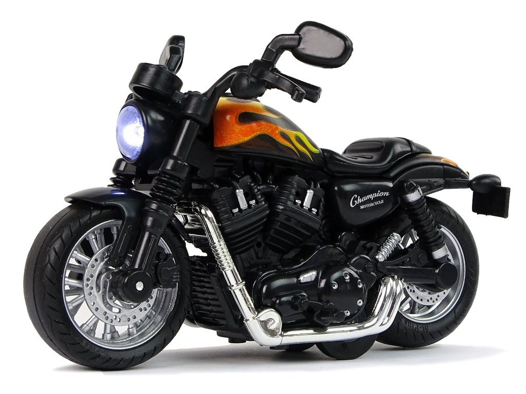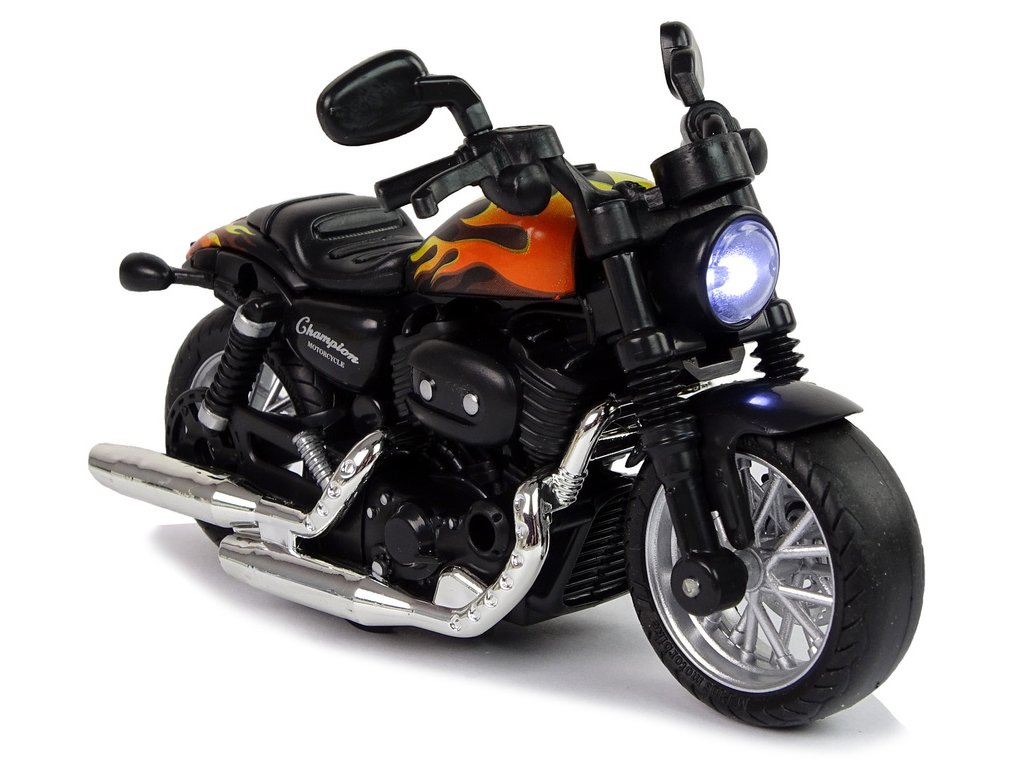 - Motocykl Champion Černý 1:14 Pull-Back pohon Zvuk Světla Rychlé motorky a závodní stroje, které se objevují na našich silnicích, vzbuzují zájem nejen nejmladších, ale i dospělých
